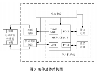 用于固井泥漿的電磁流量計(jì)的硬件部分主要由傳感器、電源電路、勵(lì)磁電路、信號調(diào)理電路、信號采集處理電路及接口電路等模塊組成,如圖3所示。本文重點(diǎn)介紹關(guān)鍵模塊勵(lì)磁電路和信號調(diào)理電路。