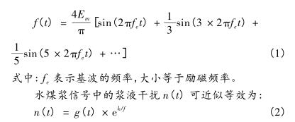 采用方波勵(lì)磁的水泥泥漿流量計(jì),其傳感器輸出的與流量相關(guān)的感應(yīng)電動(dòng)勢(shì)信號(hào)的波形也類(lèi)似于方波。針對(duì)與流量相關(guān)的感應(yīng)電動(dòng)勢(shì)信號(hào)f(t)的特點(diǎn),可知其是由基波和奇次諧波疊加而成的。對(duì)于一個(gè)給定單峰值為Em的矩形波信號(hào),其傅里葉展開(kāi)為: