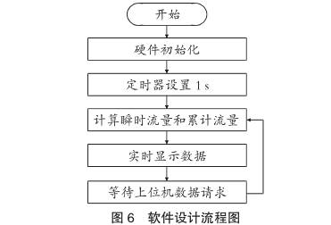 上電后程序對DSP的硬件資源進行初始化,包括中斷系統(tǒng)、GPIO口、定時器/計數(shù)器、通信端口及基本的時鐘設置。程序每秒對接收到的脈沖進行計數(shù),其除以儀表系數(shù)后的結果作為瞬時流量,同時在時間上對瞬時流量進行累積,計算出兩種流量后,將其實時顯示在液晶顯示屏上,同時將數(shù)據(jù)保存,**等待上位機電腦對數(shù)據(jù)的讀取。通信采用MODBUS協(xié)議,波特率為9600b/s,無校驗,8位數(shù)據(jù)位,1位停止位。圖6為微處理器功能設計流程圖。