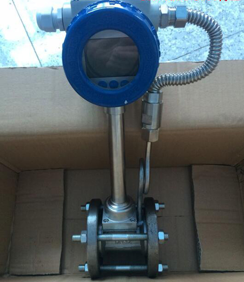 2、溫度補償一體型渦街流量計還帶有溫度傳感器,可以直接測量出飽和蒸汽的溫度并計算出壓力,從而顯示飽和蒸汽的質(zhì)量流量。