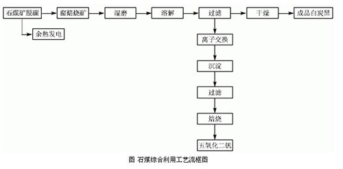 本項目為石煤綜合利用的項目?,F(xiàn)有提釩工藝產(chǎn)生大量廢渣。其主要成分為二氧化硅,但其中夾帶有大量的釩資源,釩資源利用率低,同時,該廢渣中堿含量較高,如將廢渣隨意堆放,易造成環(huán)境污染。本項目*大特點在于利用現(xiàn)有提釩工藝中的提釩二次渣作為制備沉淀法白炭黑的主要原料,將廢渣中的硅資源得到充分利用。為企業(yè)創(chuàng)造了新的經(jīng)濟增長點,同時,解決了現(xiàn)有提釩生產(chǎn)中造成的釩資源浪費和環(huán)境污染問題,此外,該項目利用現(xiàn)有提釩生產(chǎn)線脫碳工序中產(chǎn)生的余熱作為加熱熱源,取代了傳統(tǒng)工藝以煙煤為主要燃料的方法,即對生產(chǎn)中產(chǎn)生的余熱得到了有效合理的利用,又進一步降低了產(chǎn)生的燃料成本,達到了節(jié)能減排,資源綜合利用的目的,工藝流程框圖如下。