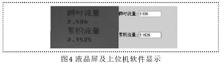 該程序主要用于實時更新流量信息,微處理器與上位機通過RS232接口以modbus協(xié)議進行通信。*后,該設(shè)計液晶屏上所顯示的流量信息與上位機軟件所顯示的數(shù)據(jù)如圖4所示。