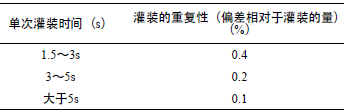 表1 灌裝時(shí)間和重復(fù)性的關(guān)系