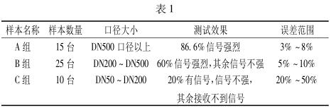 通過(guò)大量的在線(xiàn)檢測(cè)試驗(yàn),可以看出所測(cè)管道管徑對(duì)超聲流量計(jì)測(cè)試效果有明顯影響。根據(jù)數(shù)據(jù)顯示,管徑越大,測(cè)試效果越好,示值誤差越小。隨著管徑的減小,超聲流量計(jì)所能檢測(cè)到的流速信號(hào)也隨著變?nèi)?,?dāng)口徑小于 DN50 時(shí),基本沒(méi)有信號(hào)或是產(chǎn)生巨大的干擾信號(hào)。