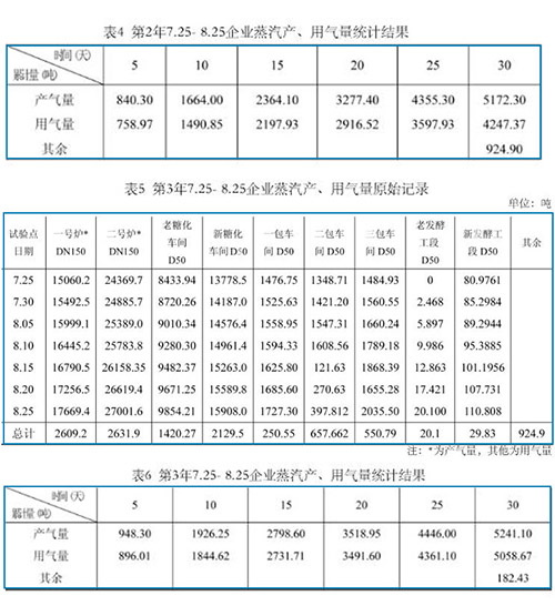 (1)綜上數(shù)據(jù),圖表可看出煙氣流量計(jì)測(cè)量飽和蒸汽,流量數(shù)據(jù)顯示清晰,穩(wěn)定可靠,其產(chǎn)、用氣量隨著流量計(jì)的完善,其差值變小了,也即使用部門越多,其消耗越少。