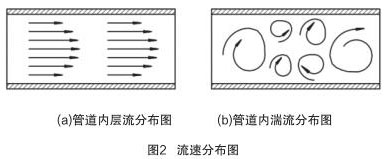 當(dāng) Re > Rec 時,管道內(nèi)流體為湍流(湍流是流體的不規(guī)則運(yùn)動,流場中各種量**間和空間坐標(biāo)發(fā)生紊亂地變化),如圖 2(b)所示。