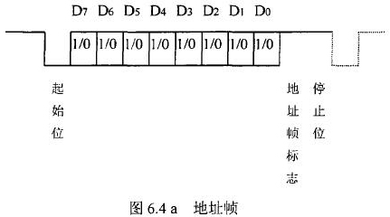 測(cè)水流量計(jì)等節(jié)點(diǎn)設(shè)備和站內(nèi)PC機(jī)間的通信采用異步串行通訊控制規(guī)程,并采用地址位喚醒握手協(xié)議。因此在協(xié)議中規(guī)定了傳地址和傳數(shù)據(jù)兩種不同的幀格式,如圖.64所示。地址幀和數(shù)據(jù)幀由11位構(gòu)成,幀格式為l位起始位,l位停止位,8位數(shù)據(jù)位,1位*9位。我們將*9位設(shè)定為“地址/數(shù)據(jù)指示位”,用來(lái)區(qū)分所發(fā)送/接受的幀信息是地址幀還是數(shù)據(jù)幀。*9位為1,表示PC機(jī)發(fā)送/接受的是“地址幀”*9位為O,表示主機(jī)發(fā)送/接受的是“數(shù)據(jù)幀”。命令幀與校驗(yàn)和的發(fā)送格式與數(shù)據(jù)幀相同,因此可由數(shù)據(jù)幀演化得到。
