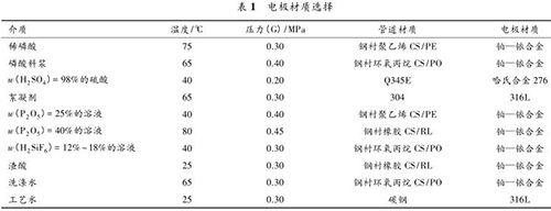 國(guó)內(nèi)某 300 kt/a 磷酸裝置中,含有不同溫度、不同壓力、不同濃度的多種酸液,包括:稀磷酸、濃硫酸、磷酸料漿、絮凝劑、P 2 O 5 溶液、H 2 SiF 6 溶液、渣酸、洗滌水、酸性循環(huán)水、工藝水等。如此復(fù)雜的工藝介質(zhì)對(duì)流量計(jì)的選型要求很高,酸液的配比、濃度、溫度、雜質(zhì)、溶解氣體以及流速等都會(huì)影響接液材質(zhì)的耐腐蝕性。