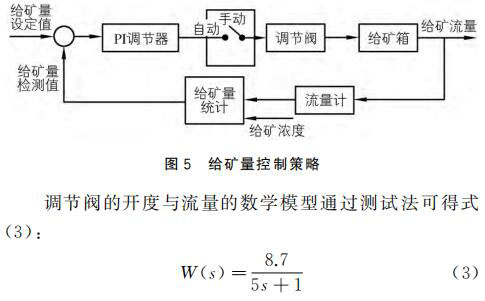 以式(3)為基礎(chǔ),對給礦量進行 PI調(diào)節(jié),實時控制調(diào)節(jié)閥的開度,并對給礦量進行精確控制。