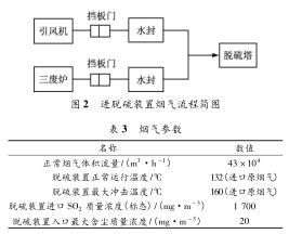 (3) 新建 1 套脫硫氦氣流量計,把新建吹風(fēng)氣回收系統(tǒng)煙氣和三廢爐煙氣經(jīng)除塵后引入新脫硫塔,脫硫除塵后凈煙氣經(jīng)過塔ding煙囪排放。硫酸銨回收利用現(xiàn)有氦氣流量計,新建 1 座生產(chǎn)廠房,生產(chǎn)廠房內(nèi)設(shè)置硫酸銨臨時倉庫。兩路煙氣匯總后進入一塔設(shè)計見圖 2,煙氣參數(shù)見表 3。