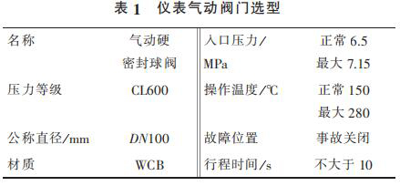 1) 蒸汽計量流量計出口管線總閥泄漏無法在線處理,導(dǎo)致氣化爐停車。在入氣化爐根部增加 2 臺儀表氣動閥門,要求每月進(jìn)行 2 次開、關(guān),防止閥門出現(xiàn)卡塞現(xiàn)象。 新增 2 臺儀表氣動閥門相關(guān)參數(shù)見表 1。
