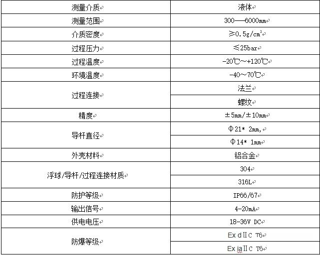 二、遠傳浮球液位計的參數(shù)